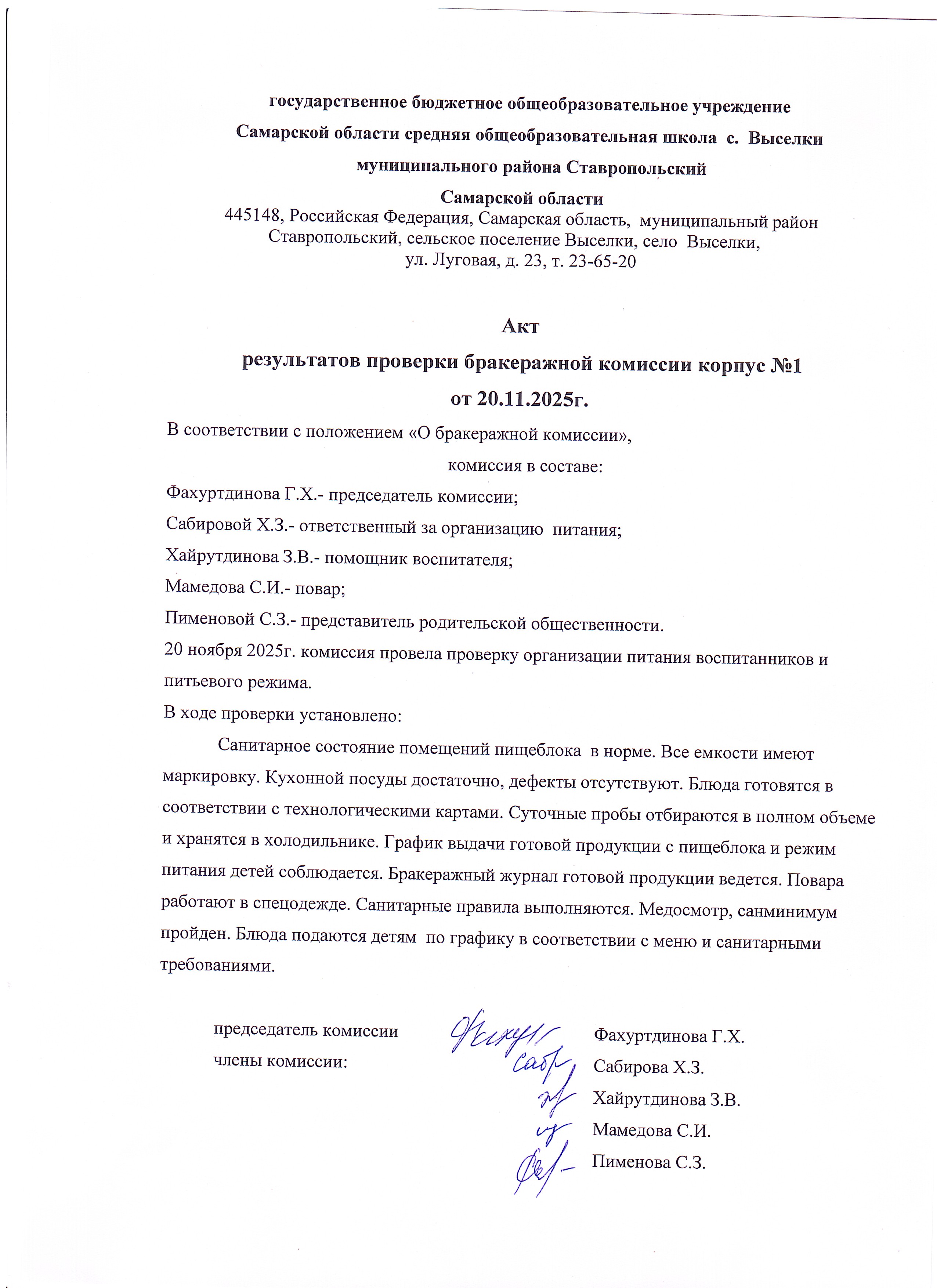 акт проверки бракеражной комиссии Корпус 1 20.11.2025